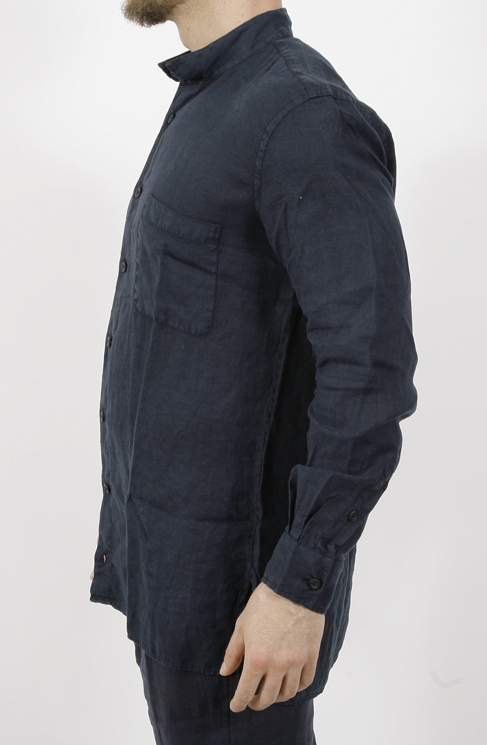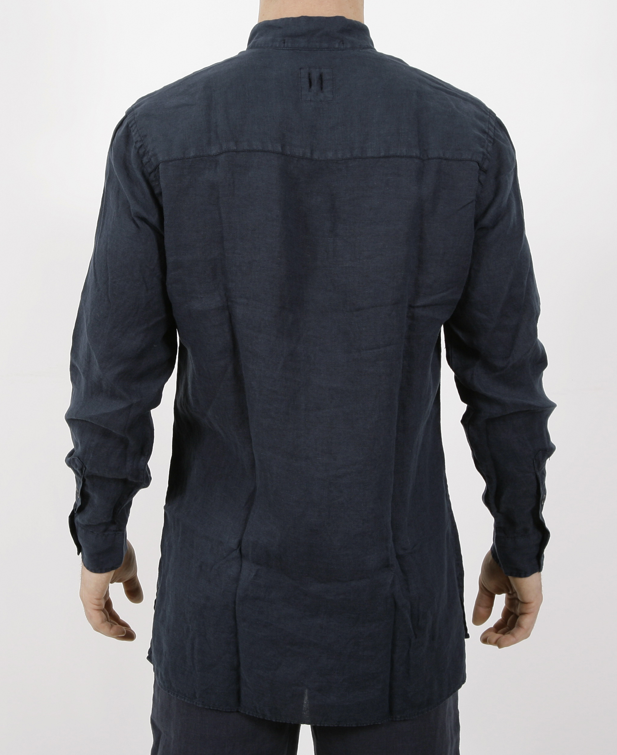 Hannes Roether Leinenhemd mit Stehkragen.
