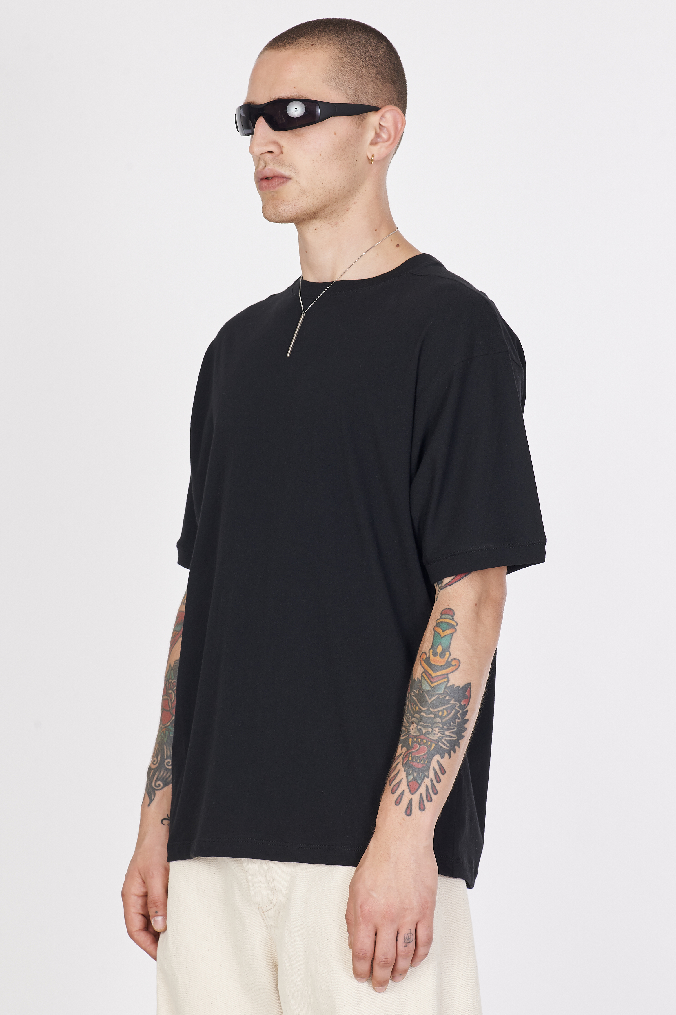 Oversize geschnittenes T-Shirt.