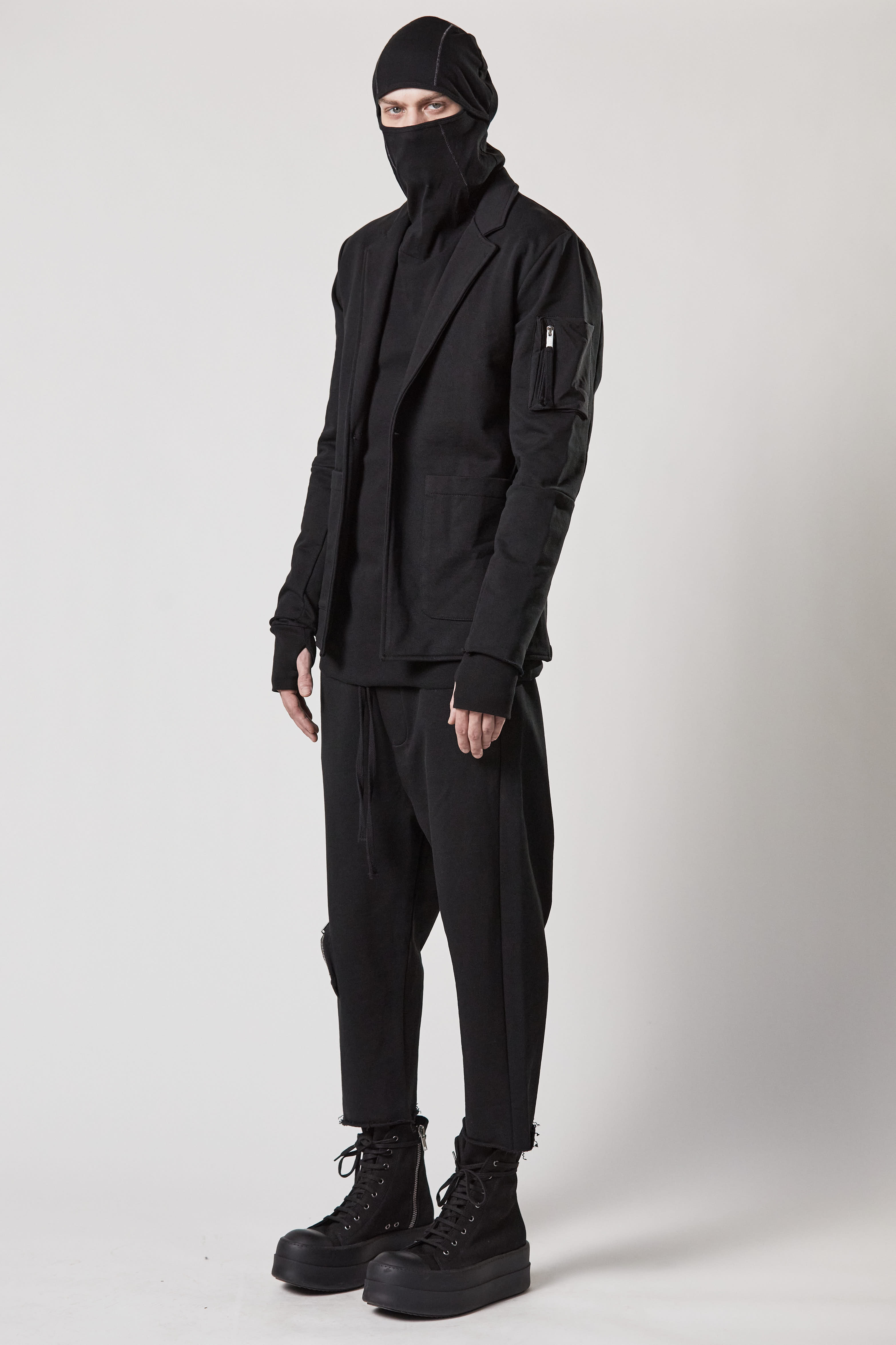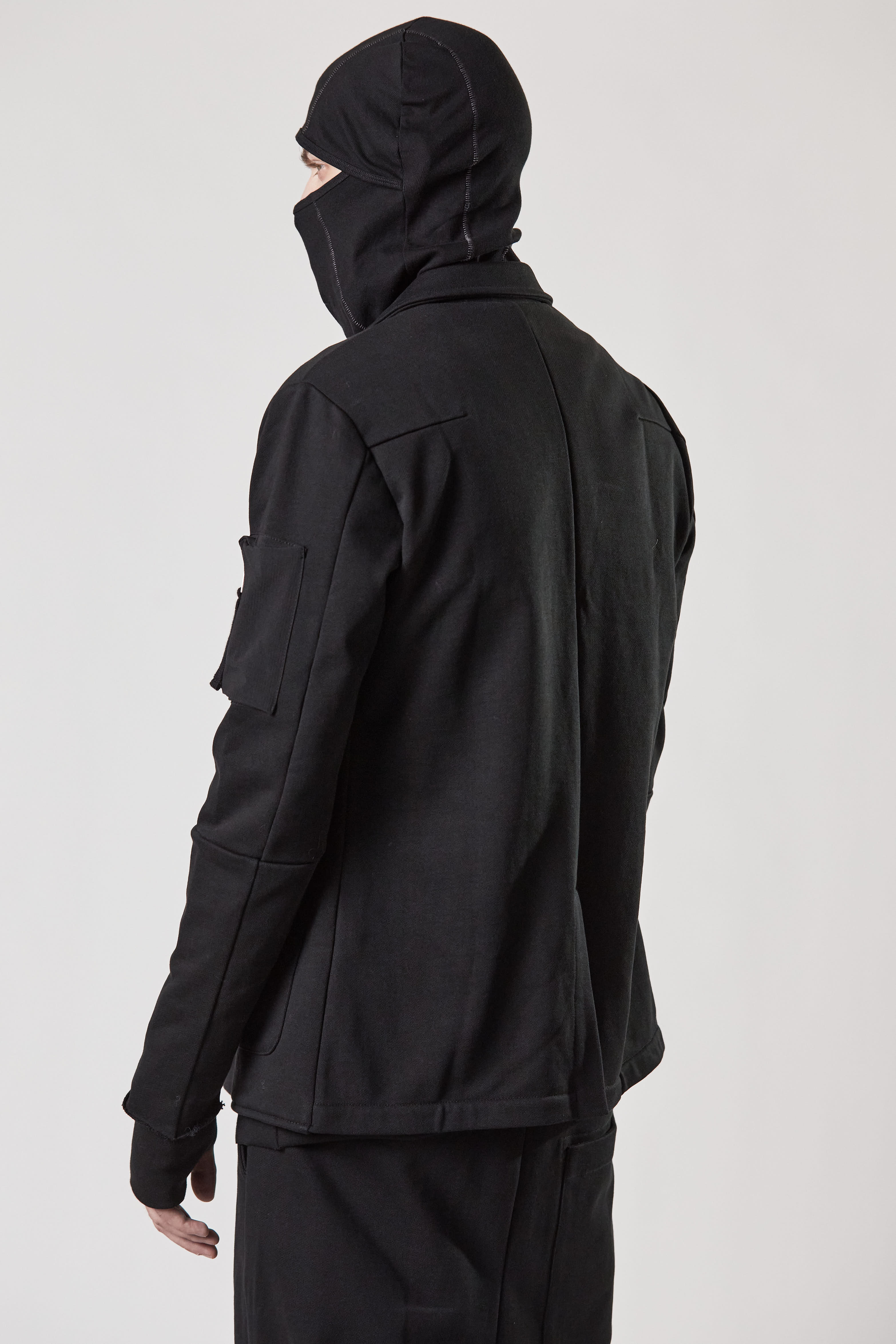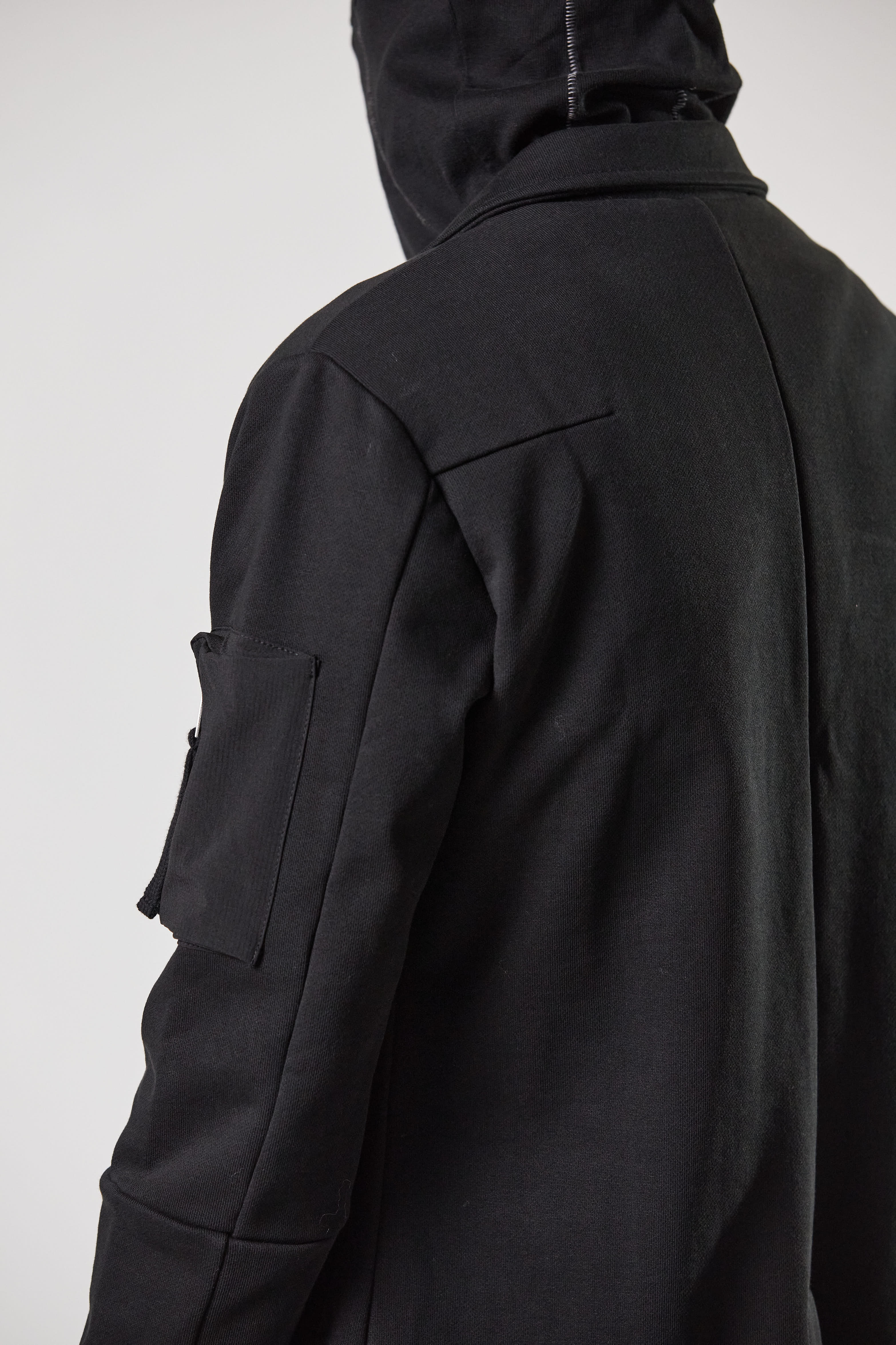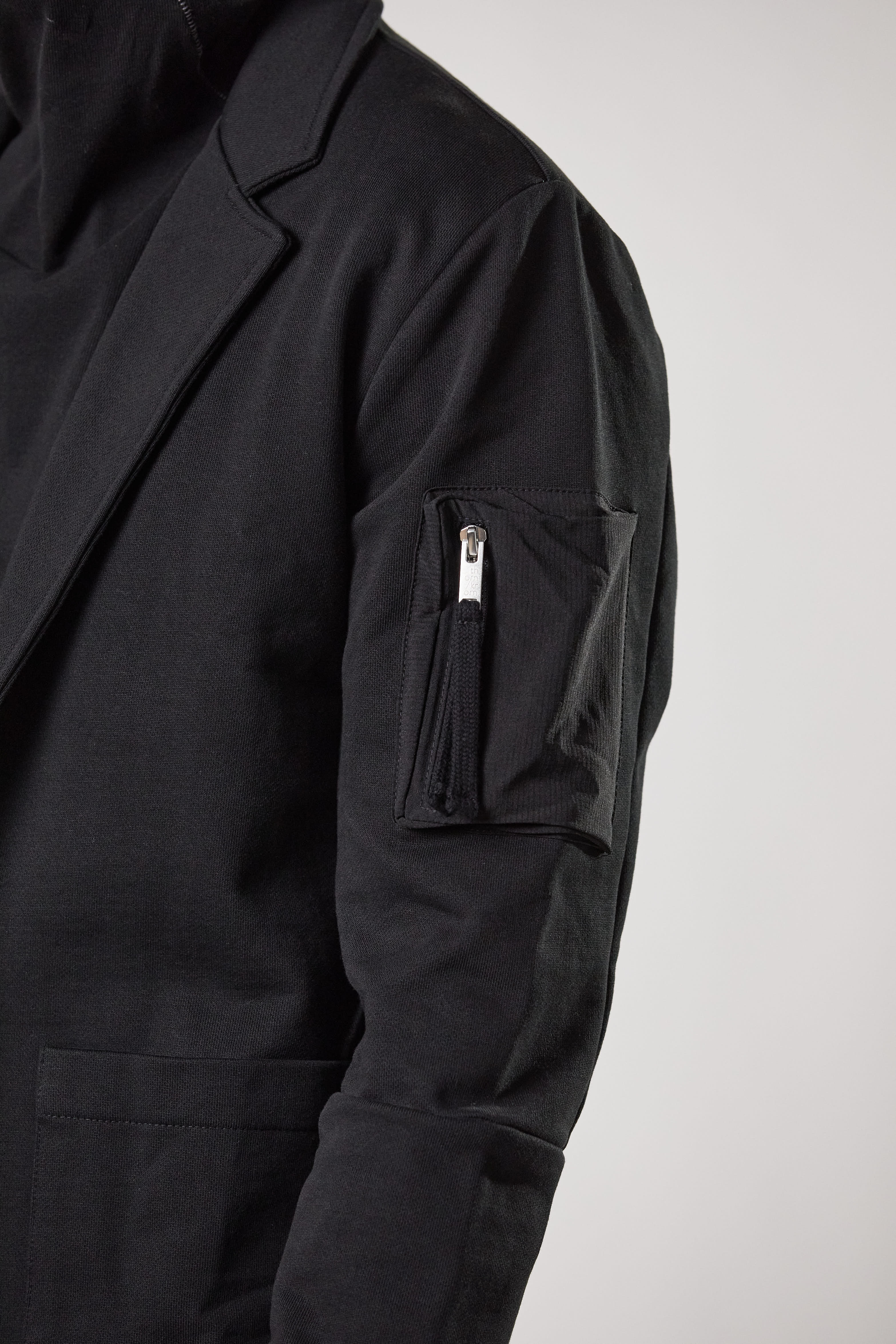 patched nylon pocket at sleeve